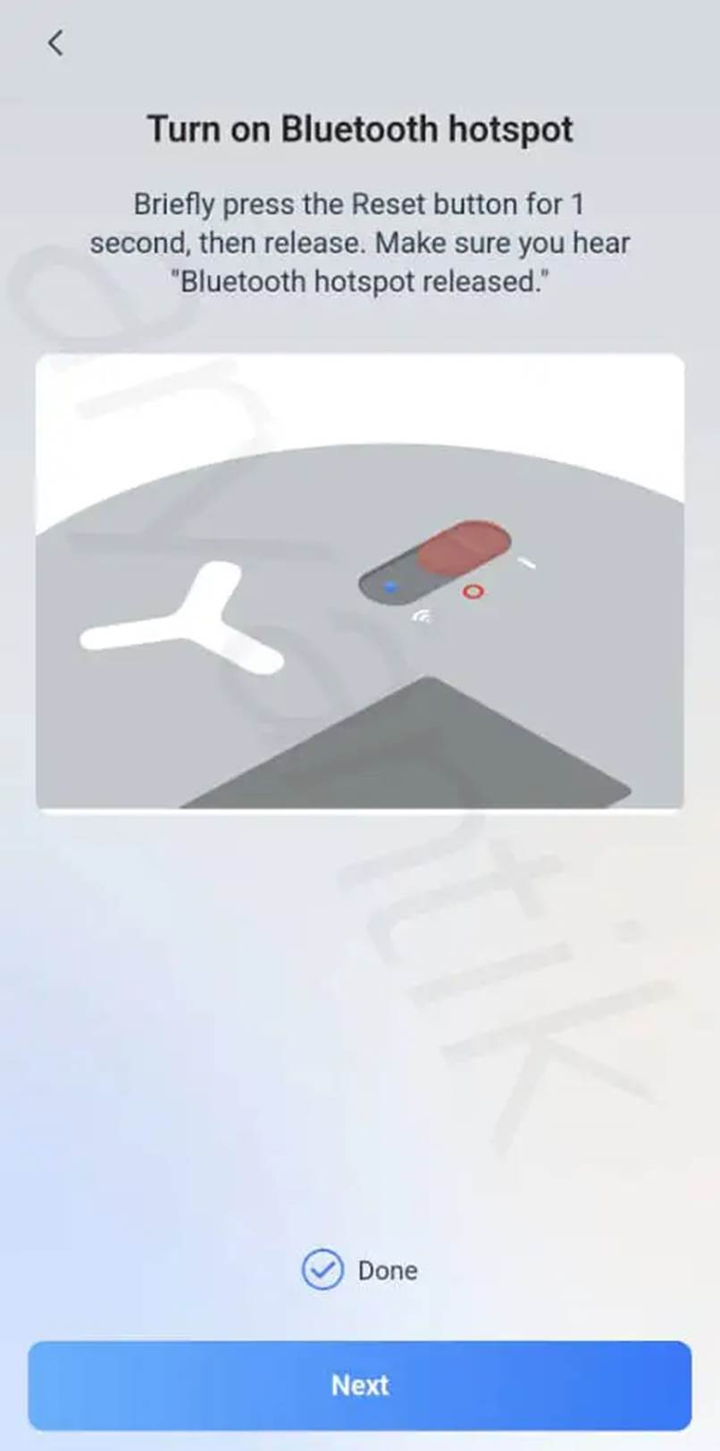 در مرحله بعد باید دکمه تنظیم مجدد یا reset button را یک ثانیه فشار دهید و سپس رها کنید چراغ آن چشمک میزند که نشان میدهد برای اتصال آماده شده است . سپس yes را کلیک کنید